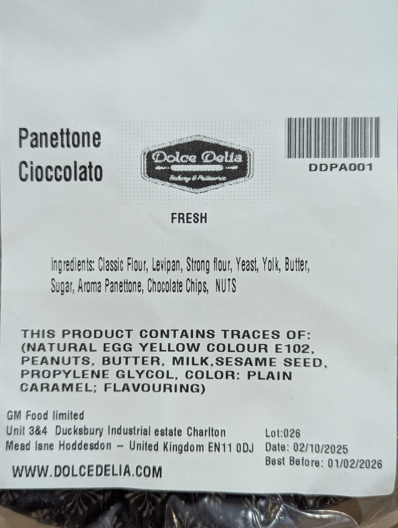 Bursting with rich chocolate chips and toasted nuts; each slice reveals a harmonious balance of tender, brioche-like dough and indulgent, melty pockets of cocoa bliss, always sublime. No preservatives, artificial flavours, or shortcuts; just pure, authentic artistry—crafted with classic flour, strong flour, Levipan, yeast, fresh yolks, premium butter, sugar, and a whisper of panettone aroma—that evokes the warmth of an Italian winter hearth.